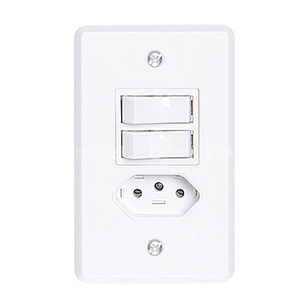 INTERRUPTOR DUPLO C/ TOMADA 6/10A 250V ILUMI SAFIRA